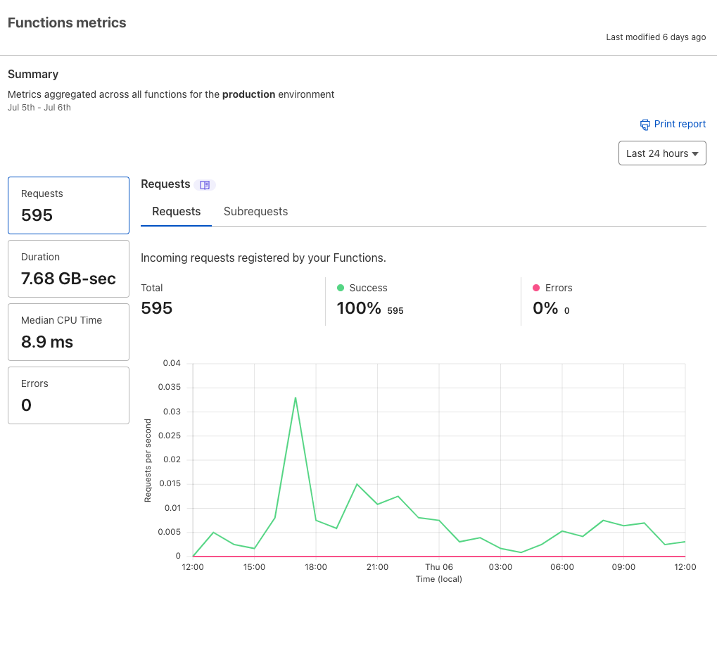 Here are the metrics for this tiny site for Cloudlfare Functions and Sendgrid.